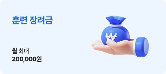 단위기간별(훈련일) 80%이상의 출석률이 되어야 받을 수 있으며, 1일 * 10,000원으로 최대 20만원 지급됩니다.